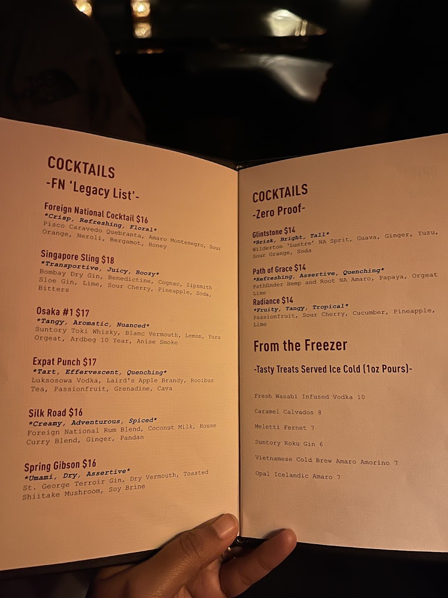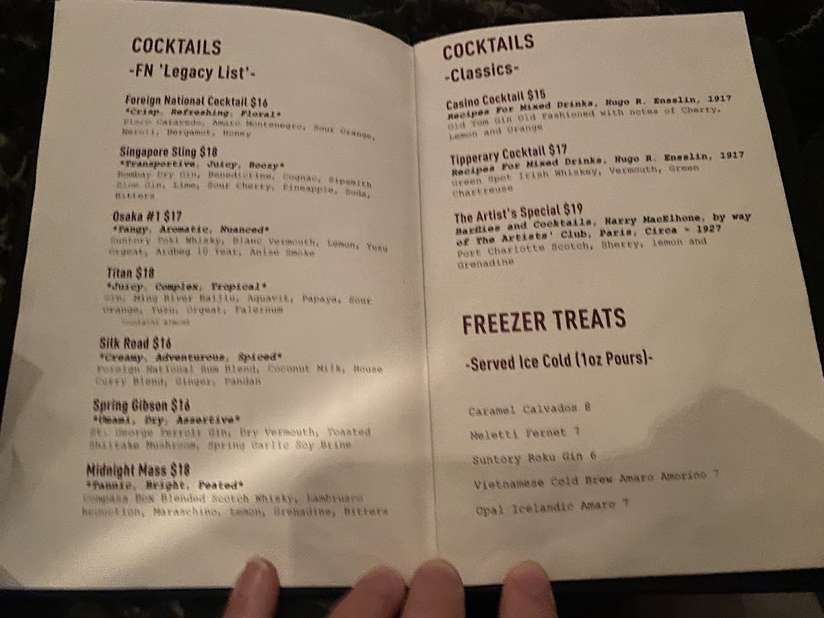 Overall, Foreign National stands out as a standout destination for cocktail enthusiasts, offering a culinary journey that’s both intimate and exciting.
